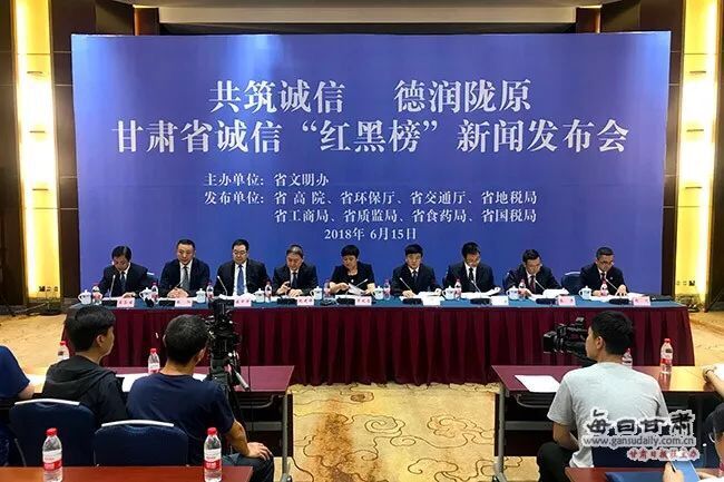 天天天水网讯据每日甘肃网消息 6月15日下午,“共筑诚信、德润陇原”甘肃省诚信“红黑榜”新闻发布会在兰州举行,国家税务总局甘肃省税务局、省高院、省环保厅、省交通厅、省工商局、省质监局、省食品药品监管局等7部门,对137个诚信“红榜”名单、75个诚信“黑榜”名单进行集中通报,并宣布惩戒措施。其中,省环保厅和省交通厅在发布会上首次发布环保工作、公路建设和道路运输红黑榜名单及惩戒措施。