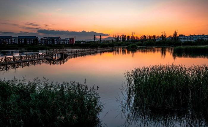 最后一站是西和县的晚霞湖。整个风景区主要有水上休闲娱乐和环湖观赏风光为主。水上娱乐包括:水上荡舟、扶艇冲浪等。环湖观光可坐电瓶车。可信步而行,村落山廓风光尽收眼底,湖边垂钓悠然忘我。柳枝拂动,苇芦交错,湖岸边花红柳绿,麦浪滚滚。夏日里彩蝶蹁跹,蜻蜓成群,蛙鼓阵阵。霞光山色,湖波水影,变幻莫测,互映成趣。特别是湖区西部一大片湿地,绒草青青,群鸟集翔。这里栖息活动着野鸭、卢雁、白鹭、山雀等鸟。因晚霞湖四周是田野村林村舍,适宜鸟类栖息觅食,一些翠鸟、沙燕、啄木鸟、红嘴乌也时来这里。游人可尽情享受大自然的天籁与野趣。晚霞湖周围各种名目的“农家乐”别有一番接待风格。山珍野菜、地方名吃应有尽有。现在已是傍晚日落时分,望着这水天一色的静谧湖边,心也被慢慢融化。