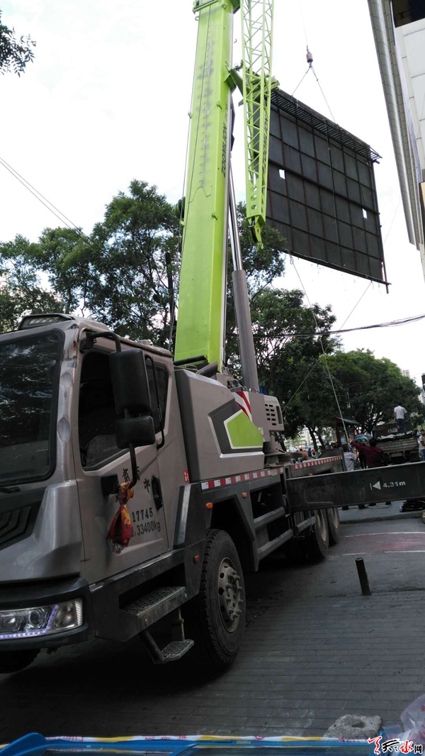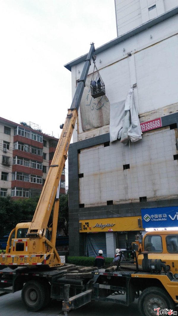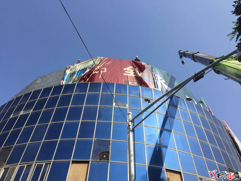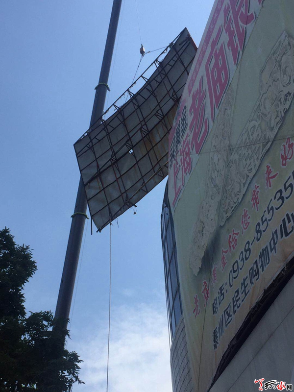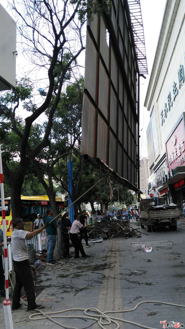 天天天水网讯【通讯员 赵懿】为了喜迎伏羲文化旅游节,优化城市环境,提升城市形象,秦州区执法局按照市委市政府、区委区政府统一部署,从6月6日开始对大众中路天水自来水公司大楼、兰天城市广场、金宇大厦、民生购物中心等建筑楼体设置的未审批、审批已过期、安全隐患大、改变建筑物外观、破坏城市形象的各类大型广告牌进行拆除,所有参与拆除行动的执法人员和施工人员工作兢兢业业,放弃节假日,工作加班加点,连续奋战11天,共拆除大型广告牌13块、2500余平方米,截止6月16日晚20时大众中路广告牌拆除行动圆满结束。