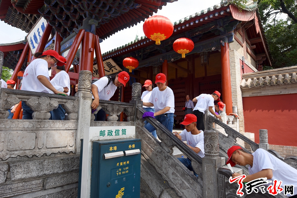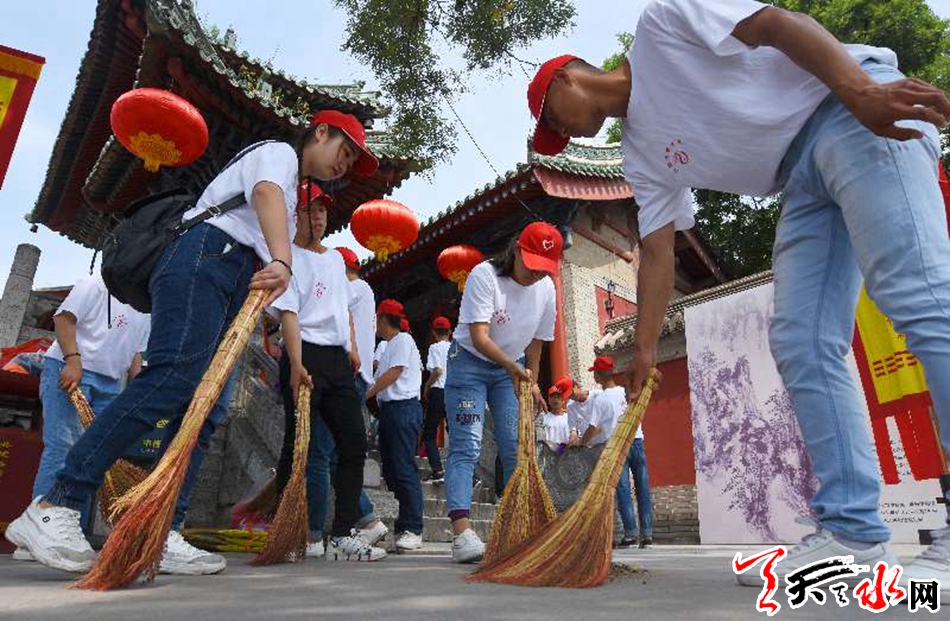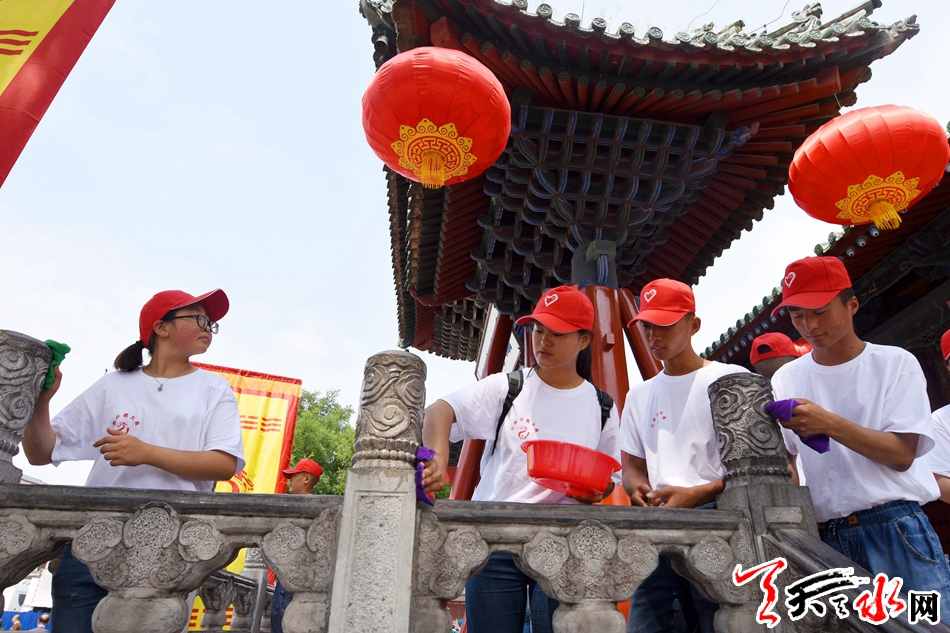 来自甘肃工业职业技术学院、天水市职业技术学校、中航天水飞机工业有限责任公司和甘肃八建的4支志愿者服务队,共260名青年志愿者参加了签名活动。活动后,志愿者们共同清扫了伏羲庙门口、伏羲广场等伏羲城内的卫生,为节会活动的开展营造了良好氛围。全媒体记者李旺旺 摄