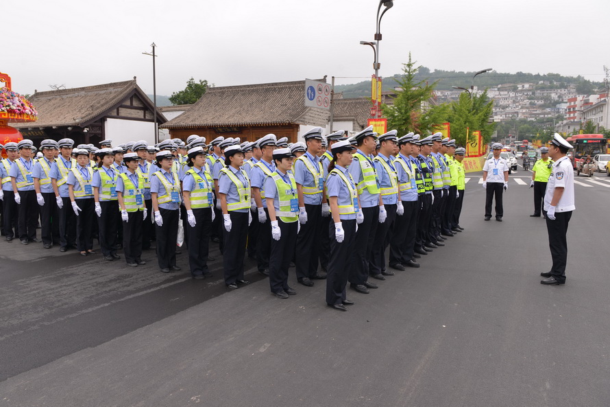 全体参战民警于上午7时30分在伏羲庙东牌楼整装集结后,按照勤务安排,由支队领导分别带领至责任路段执行勤务保障任务。
