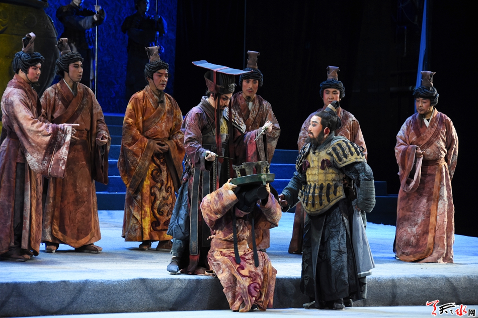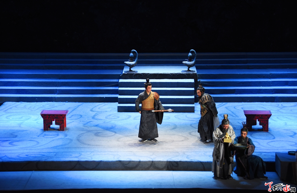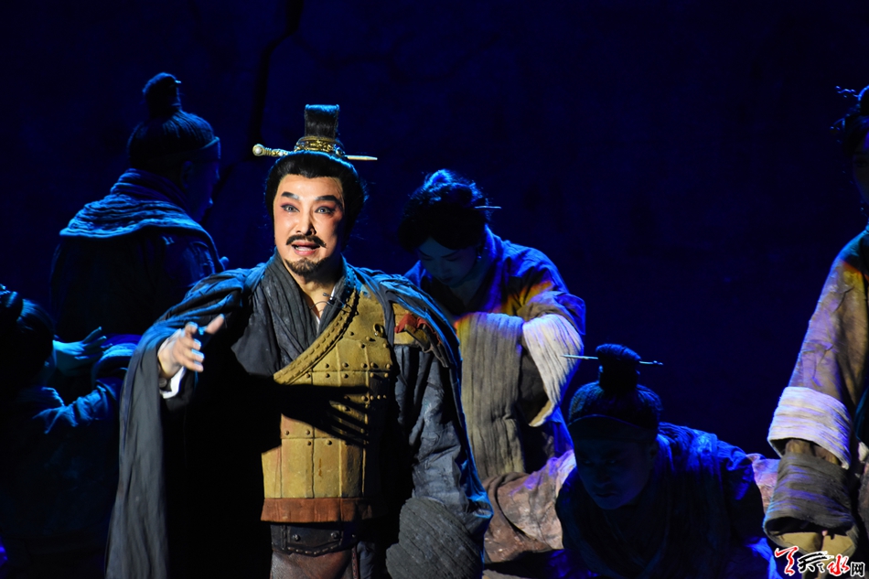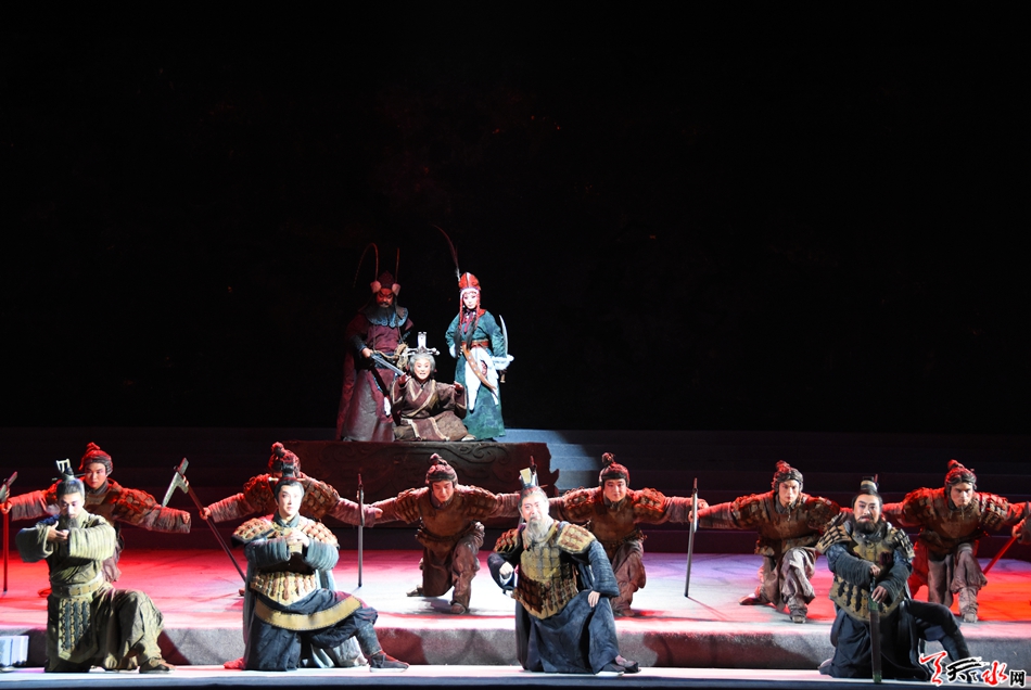 天天天水网讯【全媒体记者 李旺旺】6月21日晚,大型原创秦腔历史剧《大秦文公》在秦州剧院演出。