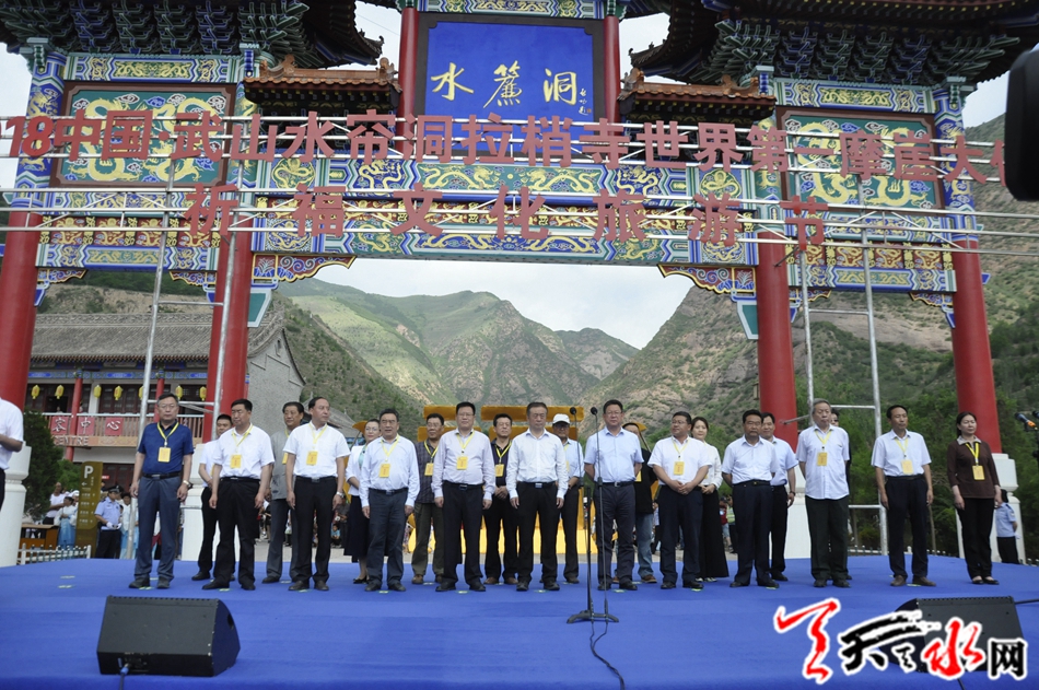 天天天水网讯【记者刘晓亚 马凯】6月23日,2018中国·武山水帘洞拉梢寺世界第一摩崖大佛祈福文化旅游节在国家4A级景区水帘洞隆重开幕,来自全国各地的嘉宾齐聚武山、祈福纳祥。市人大常委会主任蒋晓强出席仪式并宣布旅游节开幕。