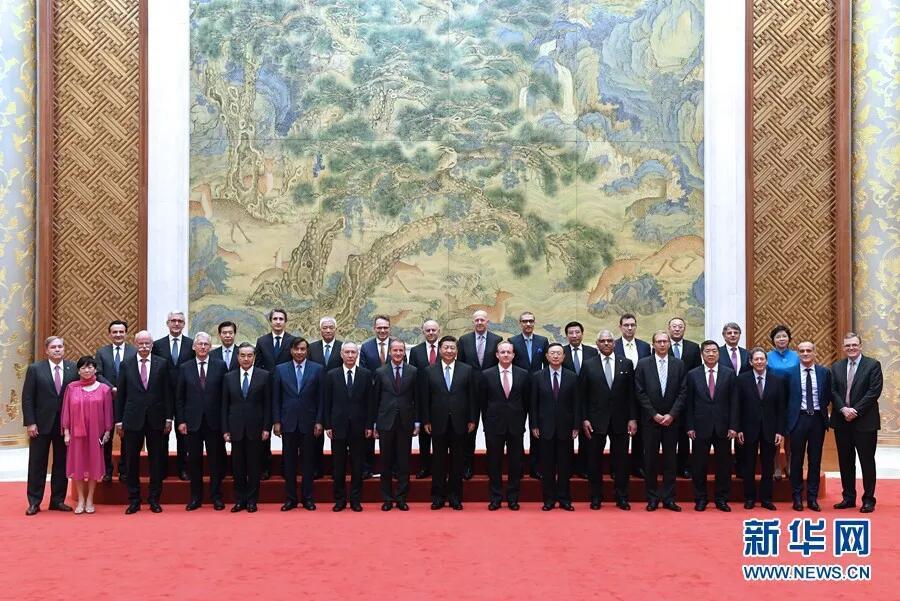 6月21日,国家主席习近平在北京钓鱼台国宾馆会见来华出席“全球首席执行官委员会”特别圆桌峰会的知名跨国企业负责人,并同他们座谈交流。新华社记者饶爱民摄