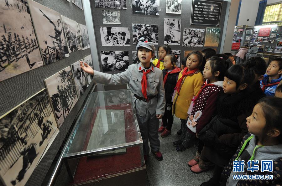2014年11月28日,在陕西省延安育才红军小学校史室,小讲解员胡馨予在为同学讲解校史。新华社记者 丁海涛 摄