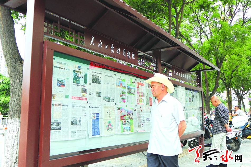 为了将党的方针、政策深入社区街道,走进千家万户,丰富市民精神文化生活,进一步展示城市文化形象,提升城市文化品位,天水日报社加大公益性基础文化设施建设,对我市主要街道上的阅报栏进行了更换,让阅报栏这个思想舆论引导和精神文明建设的前沿阵地焕发新的活力。 记者 周文涛 摄