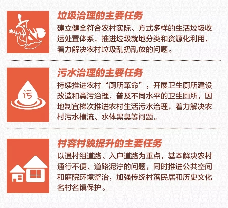本次发布的《意见》明确:到2020年,农村人居环境明显改善,东部地区、中西部城市近郊区等有基础、有条件的地区人居环境质量全面提升;中西部有较好基础、基本具备条件的地区力争实现90%左右的村庄生活垃圾得到治理,卫生厕所普及率达到85%左右。