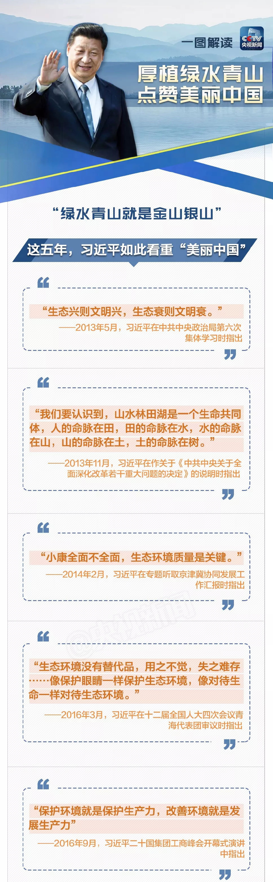总书记曾表示,人们对干净的水、新鲜的空气、安全的食品、优美的环境的要求越来越强烈,生态环境保护慢不得、等不起。过去五年多来,习近平生态文明思想有力指导我国生态文明建设和生态环境保护取得历史性成就、发生历史性变革。未来,在总书记的亲自推动下,在习近平生态文明思想的指引下,在全民的共同参与下,美丽中国必将铺展出更加壮美的图景。这也是中国对改善世界生态环境最好的贡献。