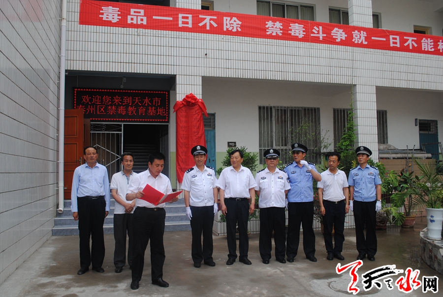 天天天水网讯【记者陈娟】6月26日是第31个国际禁毒日。当天,天水市暨秦州区禁毒教育基地揭牌仪式在市田家炳中学举行。市委常委、秦州区委书记雷鸣,副市长、市公安局局长、市禁毒委副主任马瑛为基地揭牌并参观了该禁毒教育基地。