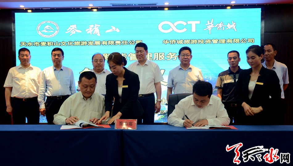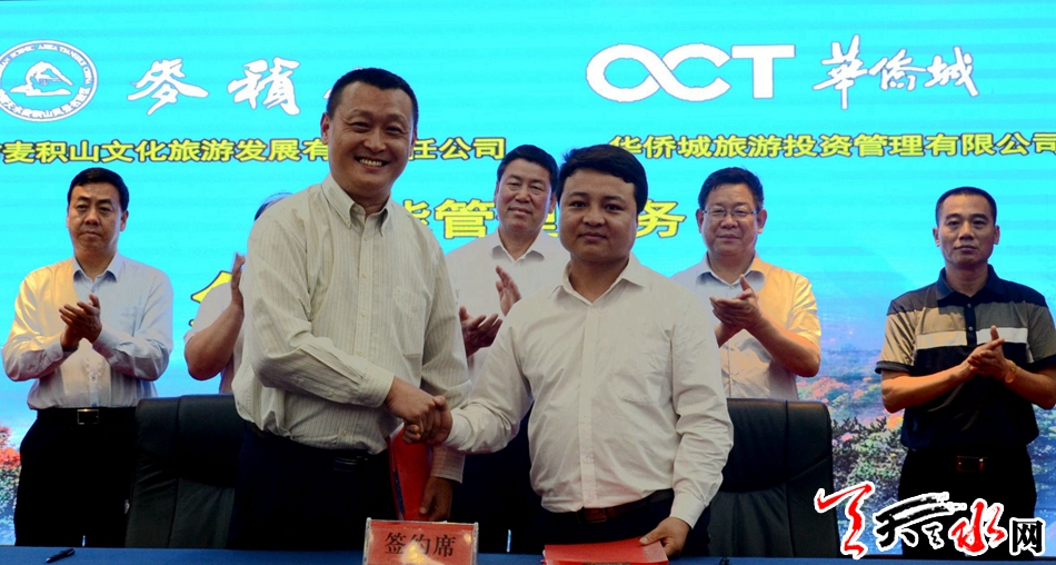华侨城旅游投资管理有限公司总裁苗壮与天水麦积山旅游公司负责人分别代表双方在协议上签约。