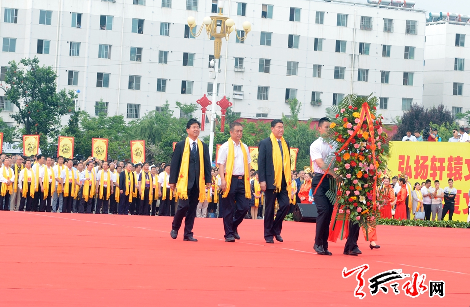 省人大常委会原副主任李膺,省军区原副政委杨耀春,省军区原副司令员张臣刚,省军区政治部原主任石新贵及天水市领导蒋晓强、王军、张明泰、王国先、张建杰、刘天波、宋建平、逯克宗、王振宇出席活动并向轩辕黄帝敬献花篮。