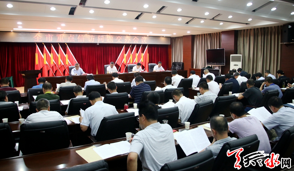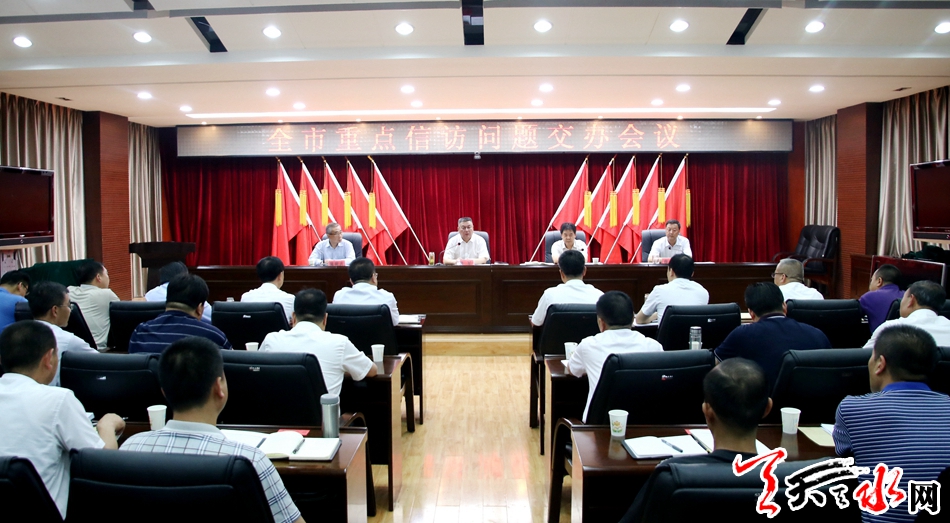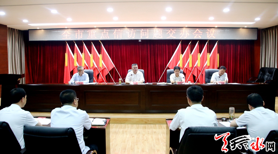 天天天水网讯【记者徐媛】6月29日,全市重点信访问题交办会议召开。市委常委、政法委书记蒲军出席会议。会上传达了市委书记王锐,市委副书记、市长王军关于近期信访工作的批示精神,通报了全市信访突出问题,宣读了督查问责工作方案,安排部署了重点信访案件交办工作。
