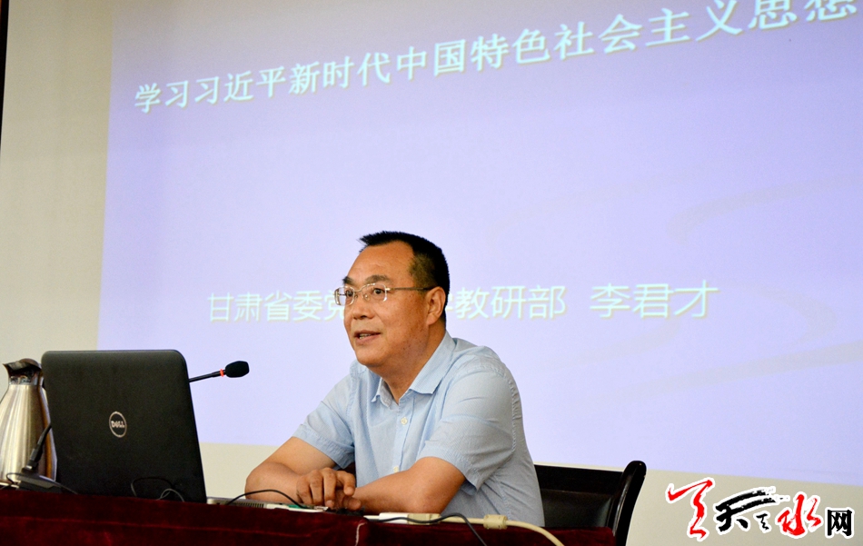 天天天水网讯【记者李欣桐】6月30日,甘肃省委党校哲学教研部主任、教授李君才为参加全市县处级领导干部学习《习近平新时代中国特色社会主义思想三十讲》暨“七一”党课第三期辅导班的学员作了专题辅导。