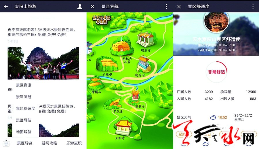 “逛景区、住酒店、找旅行社……用手机就能体验到智能化服务,还能感受到畅游天水的便利和高效,这是游客们所乐见的。”说到智慧旅游,我市某事业单位李姓退休干部说,旅游富市、旅游强市是我市的奋斗目标,因此智慧旅游建设迫切、有必要,为游客提供信息化、高品质、超便捷的旅游服务显得尤为重要。 怎么建设基础设施,才能让整个系统强大到“一部手机游天水”,周随平给出了答案:“我市文化旅游官网政务信息发布功能将会设立全市文化旅游服务热线和呼叫中心,建设全域化地理信息系统服务平台,开发文化旅游资讯网、手机APP、游客自助体验终端系统,通过官网、官微、官博和入境短信等载体,强化移动互联网、微信、微博等新媒体宣传营销,搭建全市文化旅游行业“三微一网一端”(微信、微博、微视频,电商网和移动客户端)自媒体互动式营销体系,形成以新媒体为核心的宣传营销传播机制。同时加强与腾讯、携程、驴妈妈等平台合作,通过网络直播、影视植入、达人踩线、演艺动漫、旅游攻略等形式,开展线上线下多角度、体验式、全天候宣传营销。还有就是积极推行“天水旅游一卡通”,培育发展壮大智慧文化旅游企业,搭建智慧电商平台,真正实现“一部手机游天水”,为游客提供多层次、精准化、全域化一条龙体验式服务。”