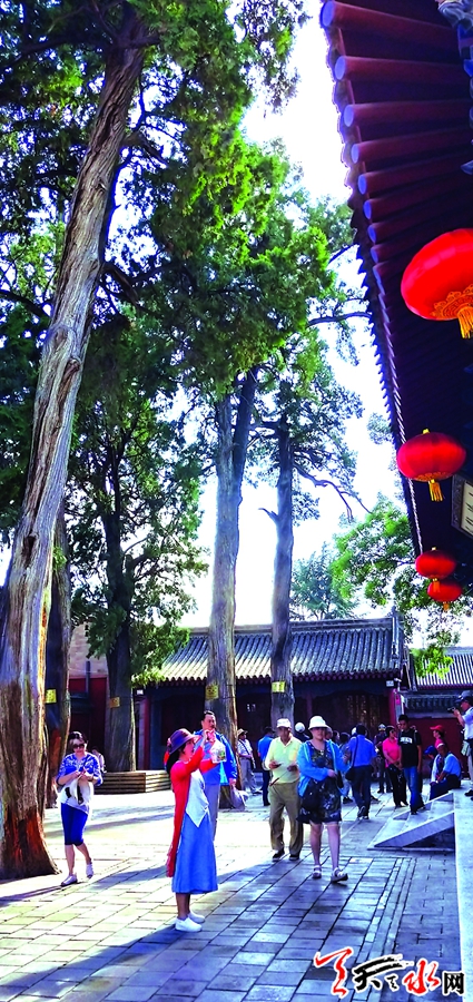 市博物馆古建筑保护与园林部主任万康成介绍说,伏羲庙景区的智慧旅游去年12月试运行,今年1月投入使用,目前,售票检票系统,基础网络设施建设、微信语音导览、赛导游APP等智慧系统运行良好,在今年5月新上线的社交预约活动每期爆满,得到了广大市民、游客的好评。接下来我们还会进行新媒体和照片打印设备的开发利用,届时通过手机扫描就可以全方位观看文物,还能通过扫描二维码把自己的照片与文物和建筑放到一起,实现游客与景区互动。