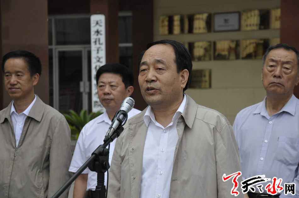 天水市人大副主任、天水孔子研究院院长安志宏在仪式上致辞,他首先对中国孔子研究院给予天水孔子研究院的学术支持表示了感谢,同时又向与会人员介绍了天水孔子研究院近年来取得的成果,并表示天水将进一步发挥基地的优势,努力与中国孔子研究院配合好,做好天水孔子文化以及国学文化的研究工作。