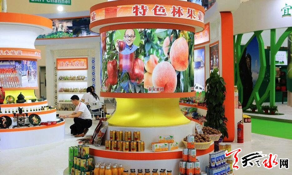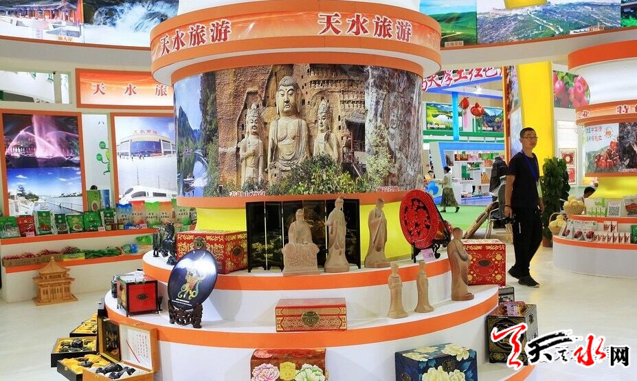 天水展区中,天水特色农产品,天水雕漆等特色工艺品吸引了众多参观者驻足。