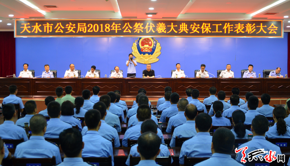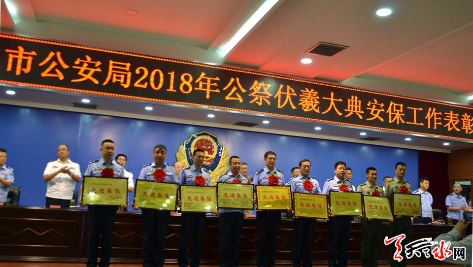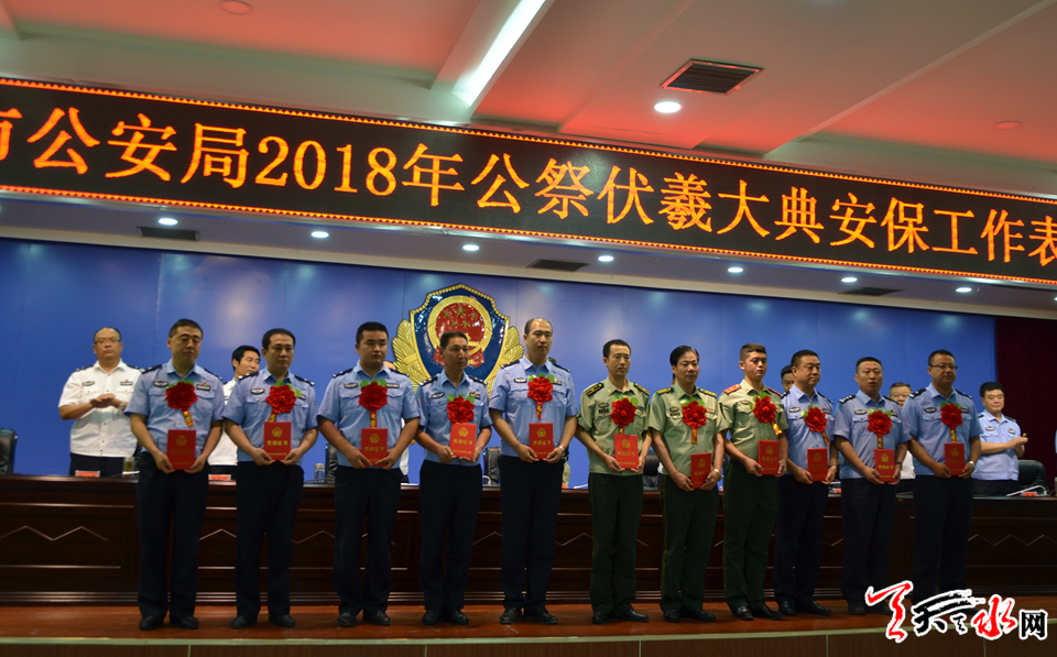 天天天水网讯【记者 张文都】7月6日,天水市公安局召开2018年伏羲公祭大典暨伏羲文化旅游节安全保卫工作表彰大会,对在节会安全保卫工作中涌现出的9个先进集体和70名先进个人进行了表彰。