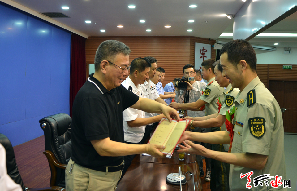 天水市委常委、政法委书记蒲军,副市长、市公安局党委书记、局长马瑛出席表彰会并为先进集体、先进个人颁发奖牌和证书。