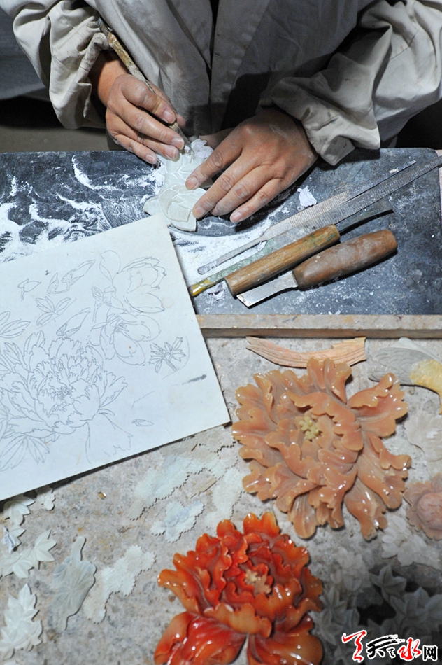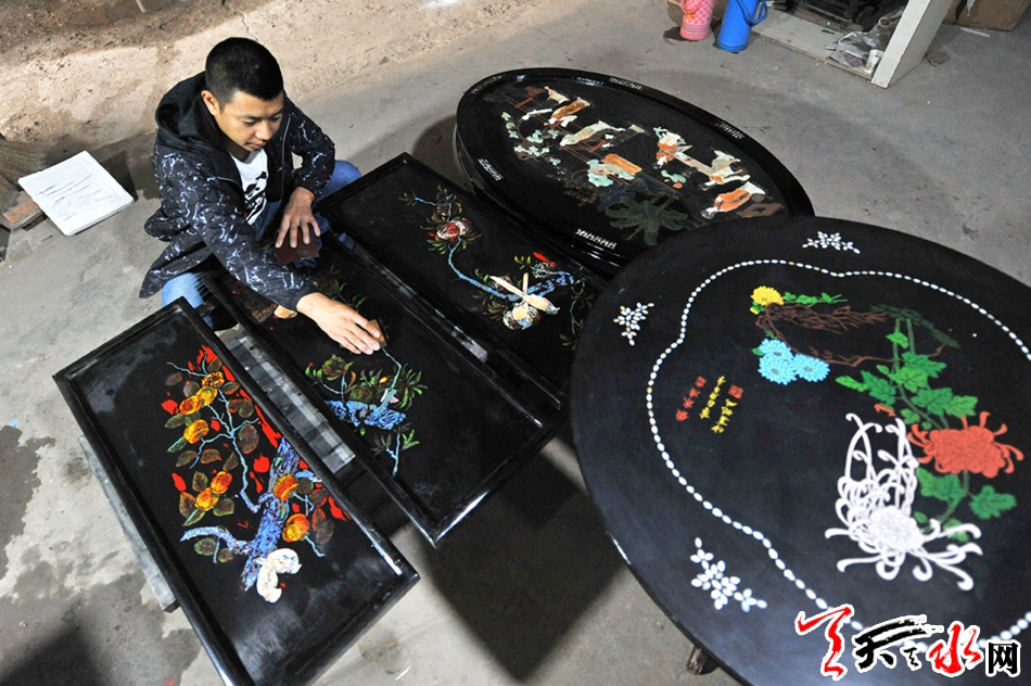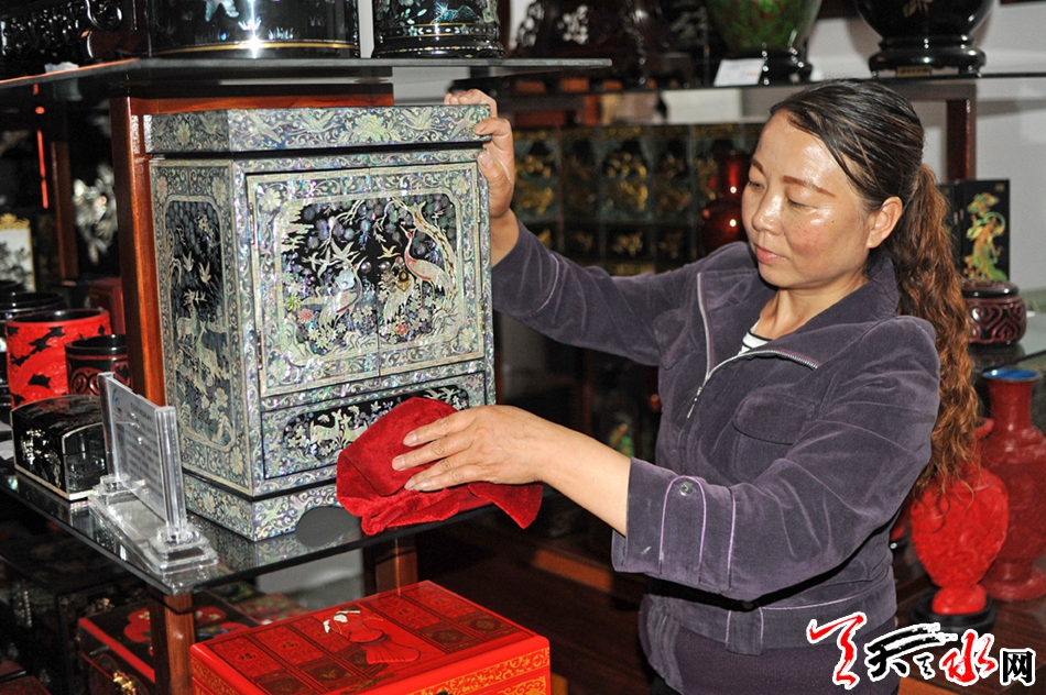 走进展厅,各种造型精致、图案古朴的雕漆制品呈现眼前,首饰盒、屏风、花瓶、古琴等,琳琅满目。“展示的这些只是成品中的一小部分,每一朵花、每一次镶嵌都是手工制作而成。”甘肃省工艺美术大师、中国工艺美术协会会员、公司总工艺师刘宝平说:“天水雕漆制品因漆质坚硬,耐酸耐碱耐高温,且既能观赏又可实用而在国内外享有盛誉。”