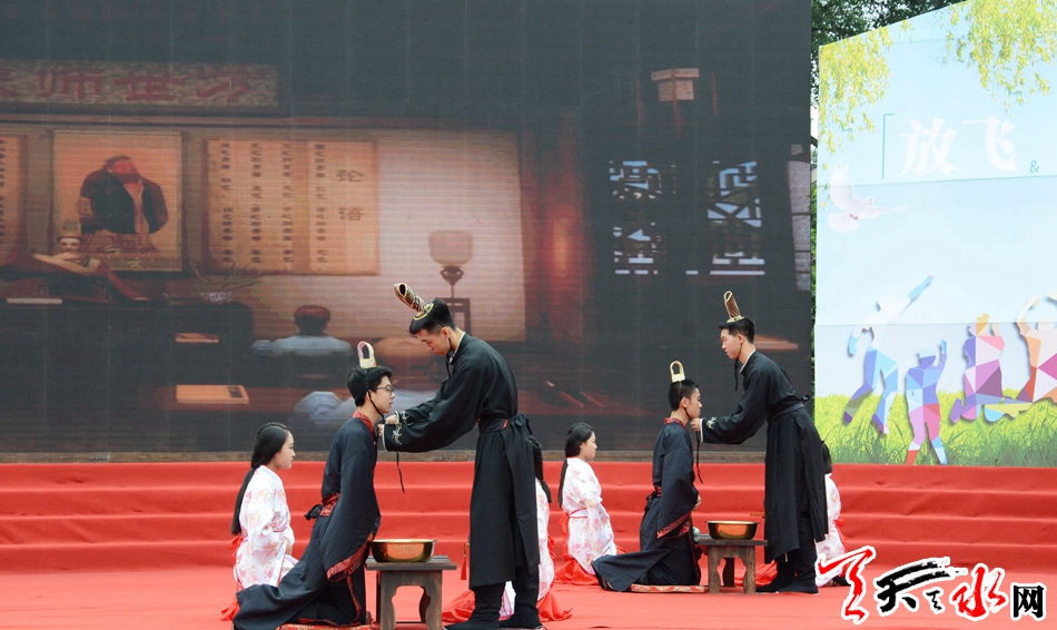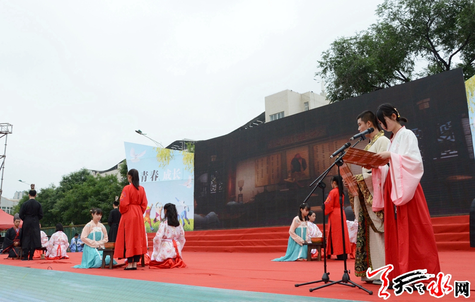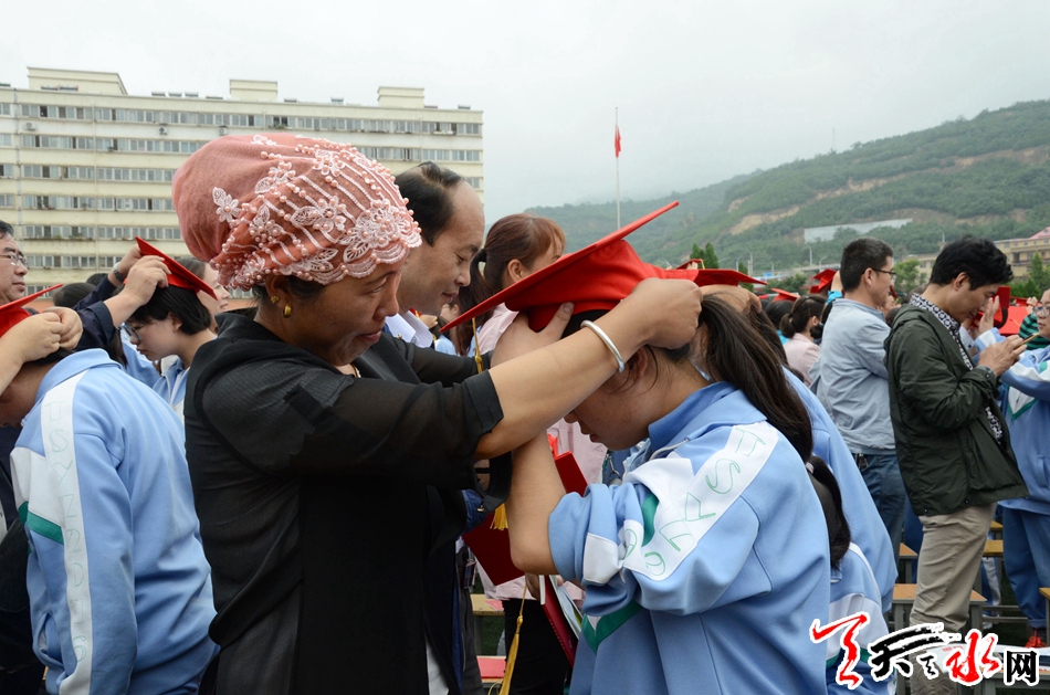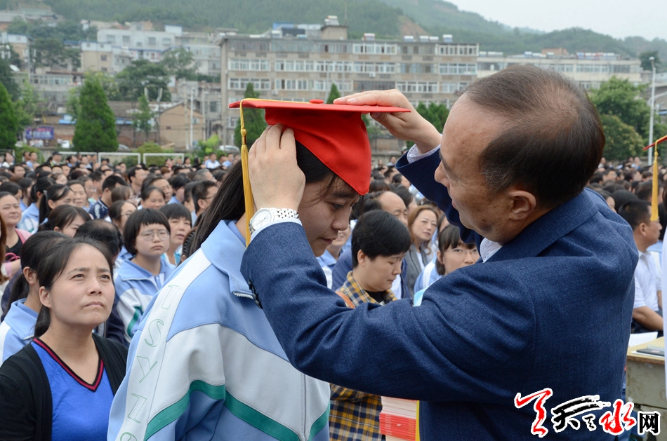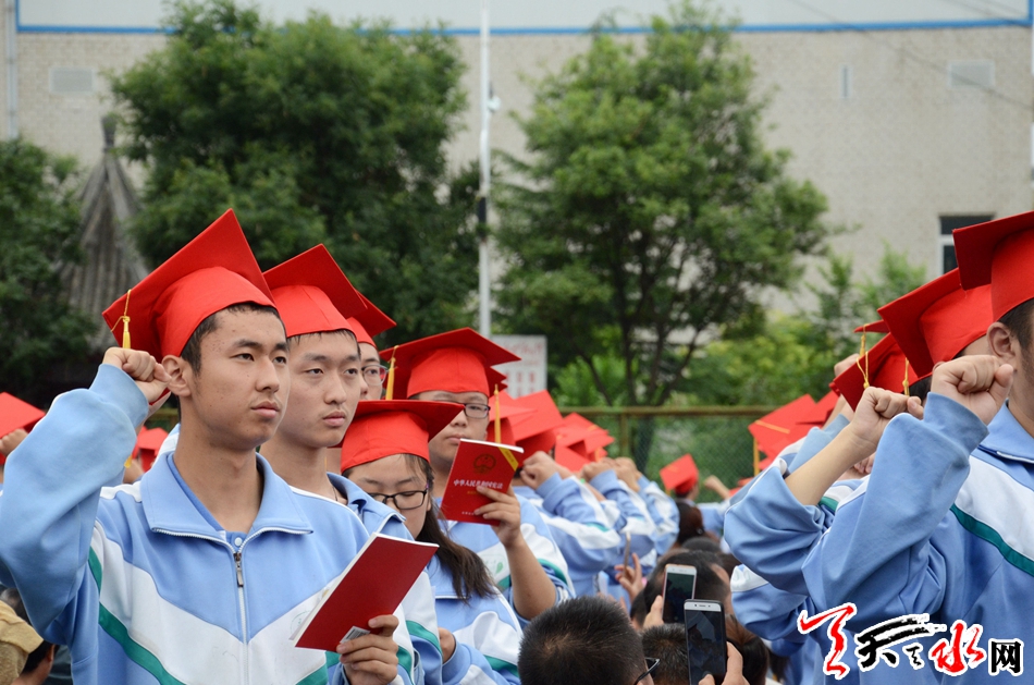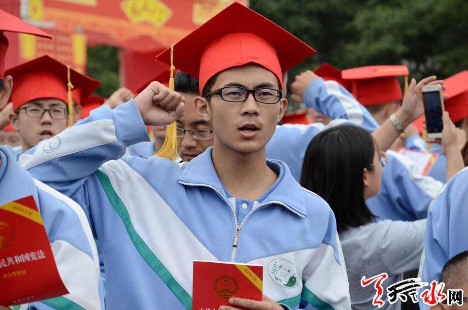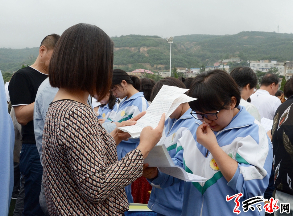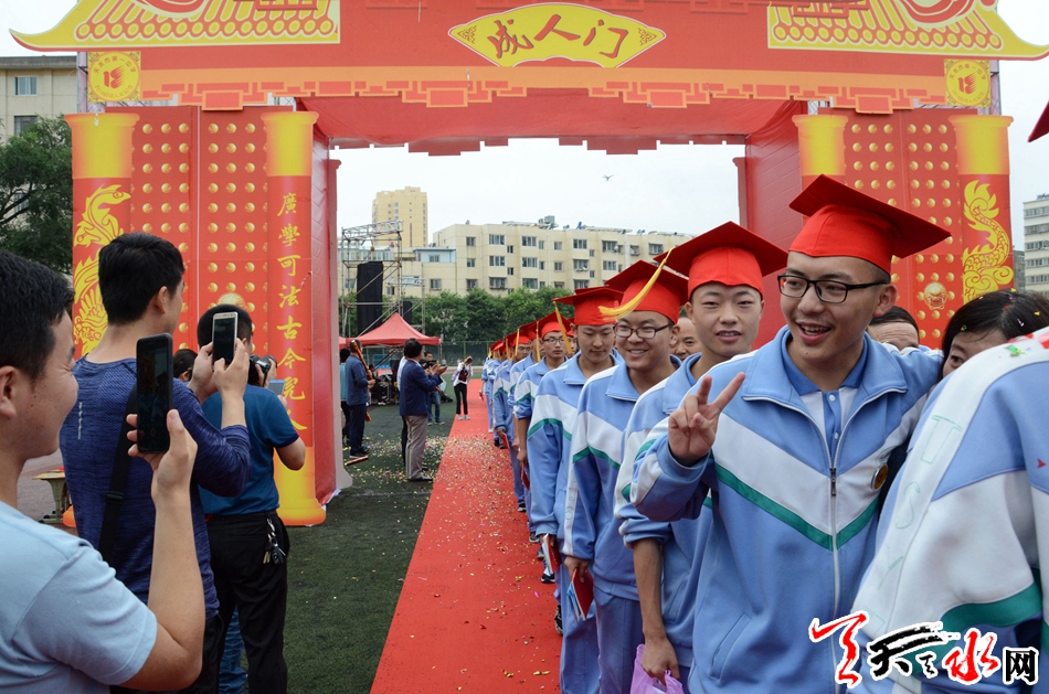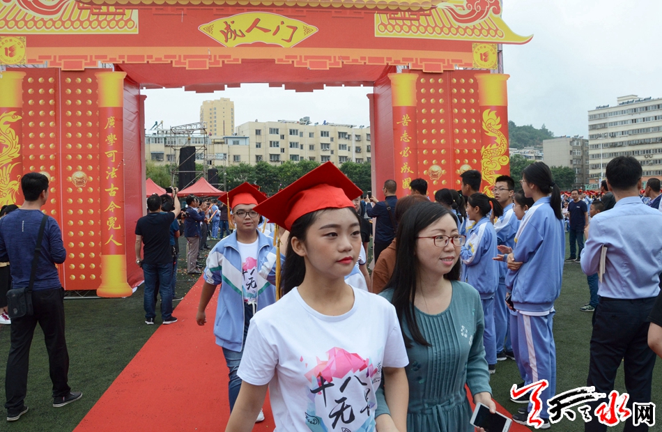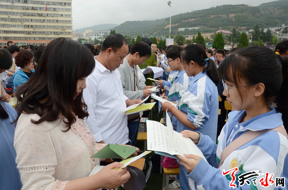 7月7日,天水市一中举行以“青春年华·给你的一封信”为主题的首届成人礼仪式,老师、高三学生及学生家长2000多人参加了仪式。