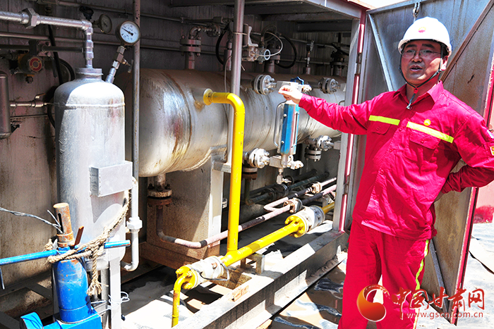 7月5日,值班工作人员向记者介绍庆1集气站的有关情况。
