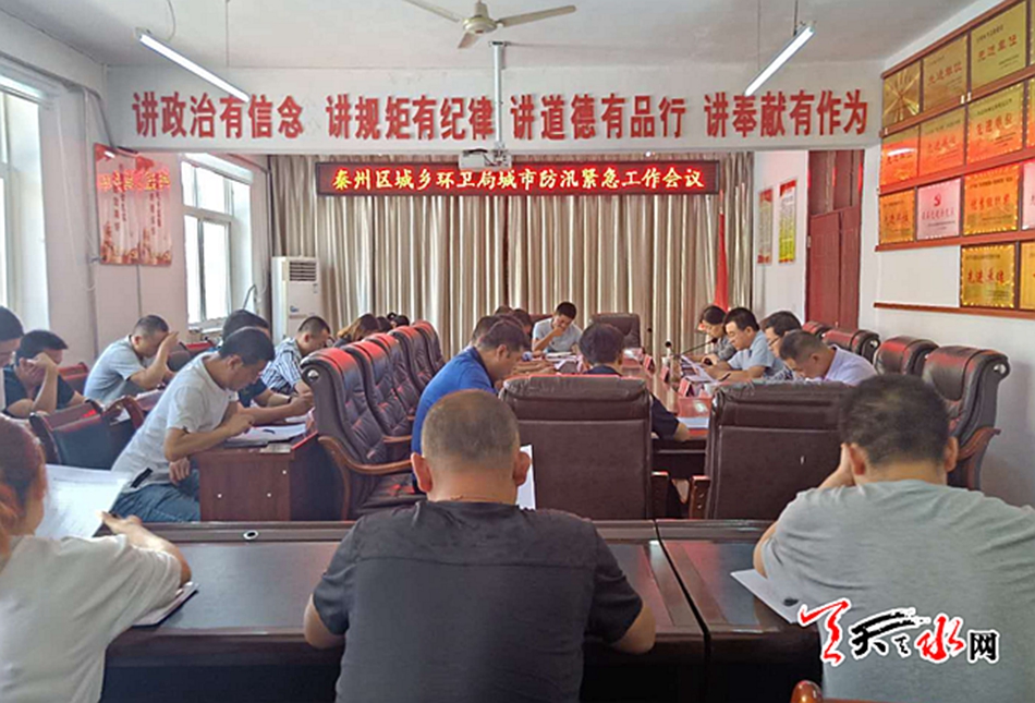 天天天水网讯 7月9日,秦州区城乡环卫局召开城市防汛紧急工作会议,局领导班子成员,各部门负责人共计30余人参加。会上传达学习了唐仁建省长在武山现场查看受灾情况时的讲话精神,对近期的城市防汛工作做了安排部署。