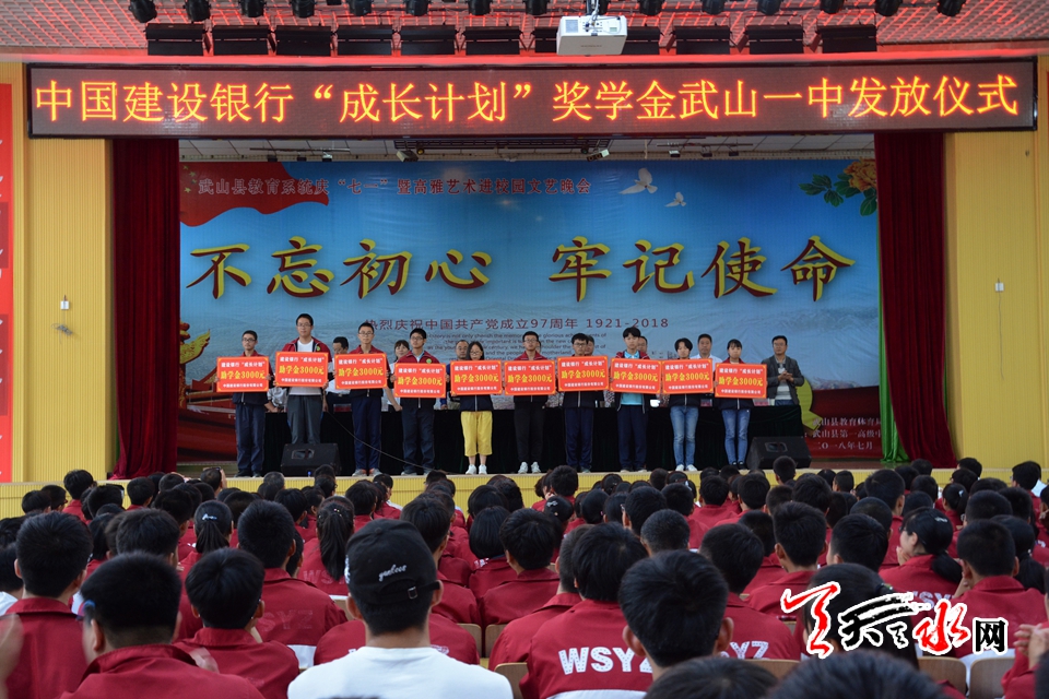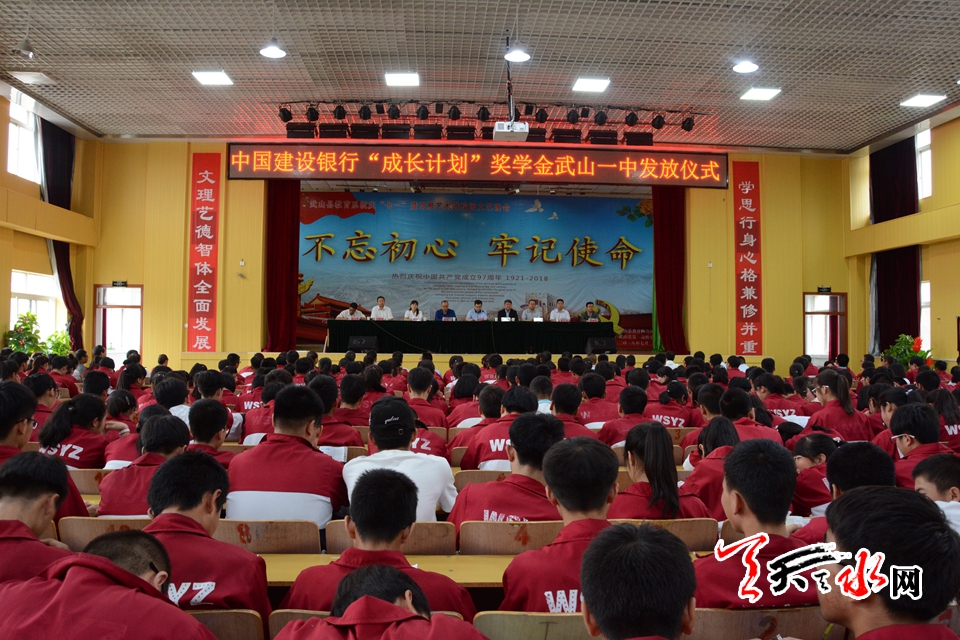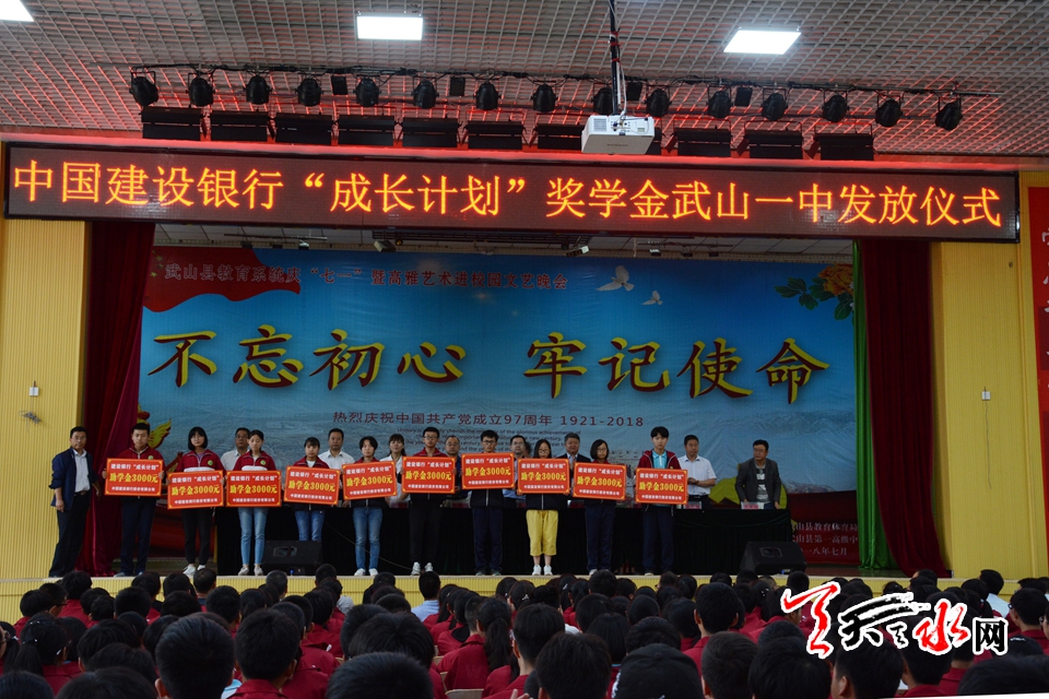 天天天水网讯(见习记者罗馨)7月10日,中国建设银行天水分行“成长计划”奖学金发放仪式在武山县一中举行。向18名品学兼优的中学生发放助学资金5.4万元。