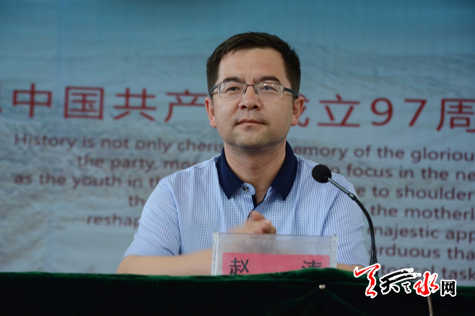 发放仪式上,赵涛代表中国建设银行天水分行致辞:中国建设银行中学生“成长计划”捐助项目,既是建设银行履行社会公民责任的义举之一,也是建设银行各级机构承担精准扶贫,打响精准扶贫攻坚战的的重要举措,更是一项社会责任的共担、发展成果共享的公益行动。让每一个有求学愿望的学生完成学业,不让一个学生因贫困而失学,是各级党委政府义不容辞的责任,也是建设银行义不容辞应该承担的社会责任,“成长计划”正是落实各级党委,政府关爱青年成长的具体行动,是温暖学子,放飞梦想的公益行动。同时他在发放仪式上对同学们提出了三点希望,一要锻炼品质,坚定信念;二要勤奋学习,打牢基础;三要学会感恩,奉献社会。康随成校长代表武山县一中在发放仪式上向中国建设银行天水市分行情系武山、心系教育的真情善举表示诚挚感谢,他说,近年来武山县一中取得了不错的成绩,2018年再创辉煌,今年高考最高分667分,一本上线480人,二本应届上线586人,这离不开县委、县政府的坚强领导、县教体局的正确指导以及全体师生的共同努力更离不开社会各界的关心支持。中国建设银行天水分行“成长计划”爱心助学行动,不仅是一项温暖人心、传递正能量的大德善举,更是深化教育扶贫、助推脱贫攻坚的一项有力举措,对激发学生热情,鼓励和带动贫困学生顺利完成学业将发挥重要作用。他倡导受助学生学会感恩,学会做人,切实珍惜这份情谊,珍惜来自社会各界的关爱,牢固树立远大理想信念,把社会各界的关怀关爱转化为前进的动力,认真学习、刻苦努力,力争做一个有理想、有知识、有道德的好学生,早日成为社会有用的栋梁之才,将来用真才实学回报社会。