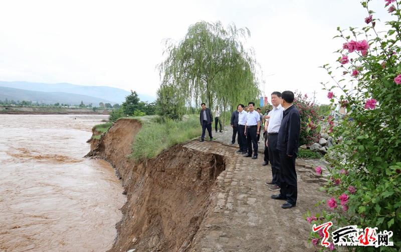7月6日,省长、省级总河长唐仁健深入武山县巡查河道堤防,检查防汛救灾工作。