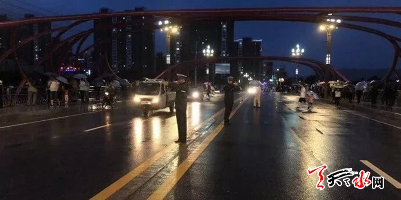 天水交警在雨夜守候