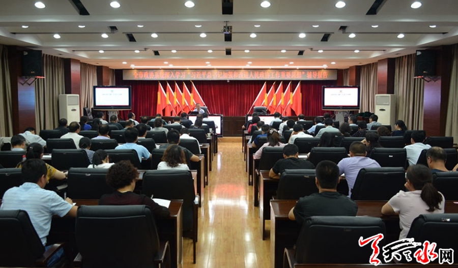 市政协副主席王振宇主持报告会,市政协副主席刘永年、苏定武、唐宏伟,市政协秘书长王小林,市政协党组成员贾忠慧,市政协、秦州区政协全体干部职工等聆听了报告。