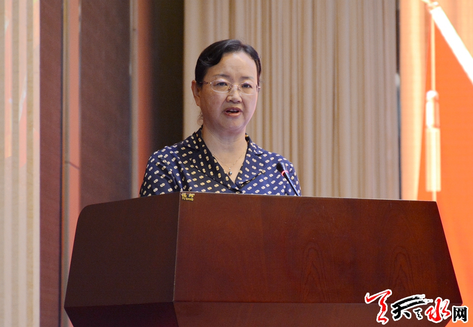 黄爱菊代表省妇联向大会的召开表示热烈的祝贺,对天水市妇联五年来的工作成绩给予了充分肯定和高度评价,希望全市各级妇联组织和广大妇女更加紧密团结在以习近平同志为核心的党中央周围,深入学习贯彻党的十九大精神和习近平新时代中国特色社会主义思想,坚持党的领导,履行政治责任,坚定不移跟党走。各级妇联组织要团结带领广大妇女在社会生活和家庭生活中发挥“两个独特作用”,依法代表和维护妇女合法权益,改革创新,转变作风,推动妇女事业发展,为决胜全面建成小康社会作出新的更大贡献。