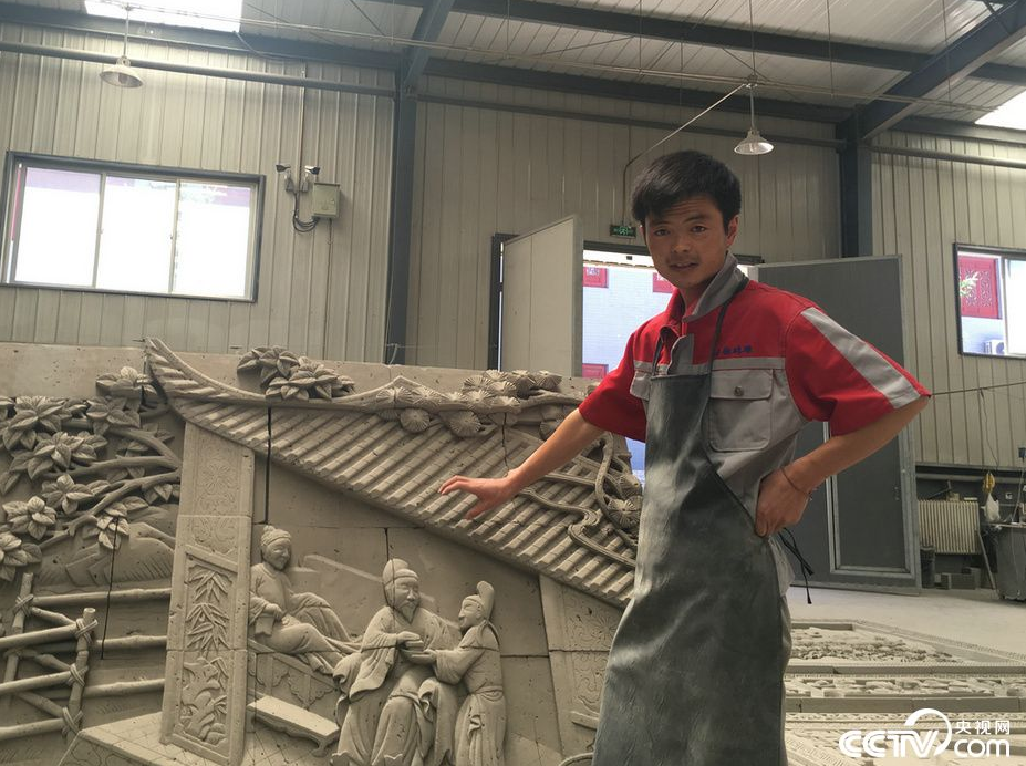 临夏回族自治州临夏县的郭宏杰,原本在外打零工,4年前,一次偶然的机会,他与当地砖雕结缘。他狠心回老家进入临夏青韵砖雕有限公司雕刻车间做学徒,如今已是一名砖雕师傅,每月能赚4000元收入,还能陪着孩子一起长大。