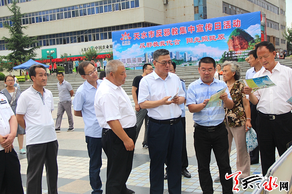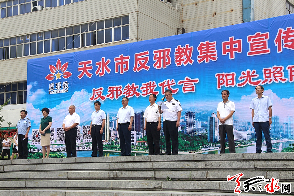 天天天水网讯(记者 马哲)为进一步增强防邪、反邪意识,切实增强我市广大干部群众抵御邪教侵蚀的能力,大力营造 “崇尚科学、反对邪教”的氛围,7月19日,我市在龙城广场举行了以“反邪教我代言、阳光照陇原”为主题的反邪教集中宣传日活动,市委常委、政法委书记蒲军出席活动。