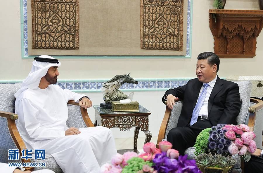 习近平愉快地回忆起中阿两国友好交往的历史。习近平指出,中阿传统友好基础扎实、历久弥坚。2015年王储殿下访华期间,我们共同规划中阿关系发展蓝图,开启了中阿关系新篇章。我这次访问阿联酋,我们双方达成新的广泛共识,我深感两国发展全面战略伙伴关系顺应潮流,大有可为。双方要深化全方位合作,为两国关系长远发展打下坚实基础,推动中阿全面战略伙伴关系行稳致远。