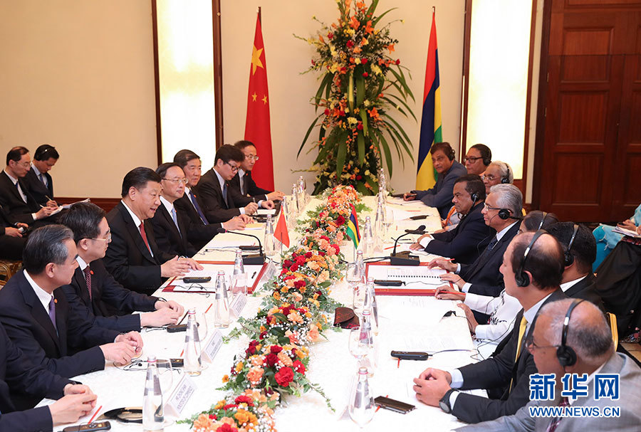 习近平积极评价毛里求斯独立50年来取得的不凡成就,赞赏毛里求斯历届政府一贯秉持对华友好政策。习近平指出,中毛两国和两国人民友谊深厚、感情亲近。中毛建交46年来,双方政治互信不断加深,各领域交流合作成果丰硕。中方愿同毛方始终做好朋友和好伙伴,推动中毛友好合作关系不断迈上新台阶。