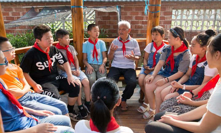 今年88岁的陈强是一名退伍军人,也是一名校外教育辅导站兼职辅导员。他把关心下一代,教育培养下一代的爱国情怀作为自己应尽的义务。“1938年7月18日,日本鬼子一大早下乡烧杀掠夺,一路杀了108人,最小的只有4岁……”陈强用他充满深情的声音向孩子们讲述了抗日战争期间,发生在如皋大地上的真人真事。陈老用他的抗战故事教导孩子们努力学习,奋发图强,为中华民族的伟大复兴而努力奋斗。