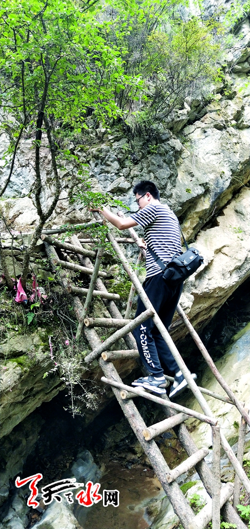 近年当地村民在景区内发现了几处大型天然溶洞,在西北地区十分罕见,更是自然奇观。溶洞洞口被两侧树木遮挡得严严实实,十分隐蔽。溶洞入口狭窄,需蹲下身子方可进入。洞内岩壁湿滑,脚下泥泞,只能容纳一人屈膝通过。再往里行五六米后,发现一洞中洞,洞与洞的垂直深度在15米左右,为方便出入,热心村民在洞内搭建了软梯,从悬梯下去后洞内豁然开朗,面积有一间教室大小,中间宽阔两侧窄,高有十多米,洞顶有钟乳石倒挂,姿态各异的奇石一览无余,时不时可以看见蝙蝠和飞蛾的踪迹。