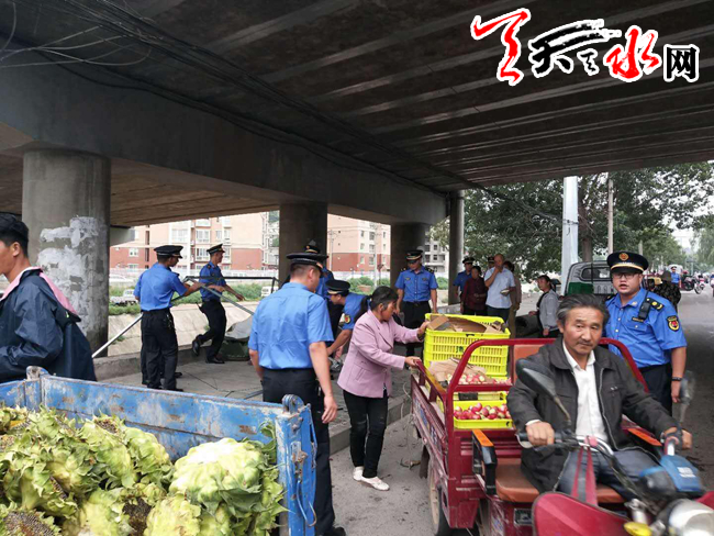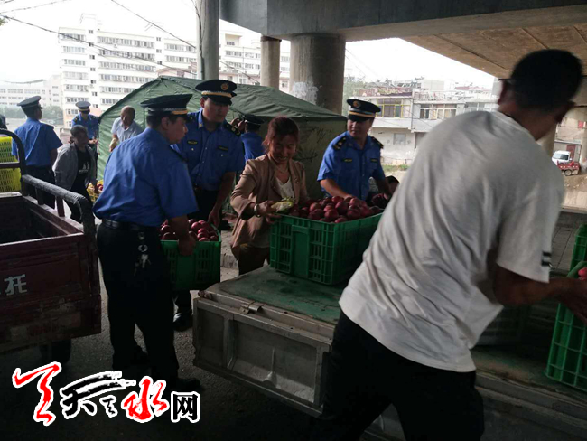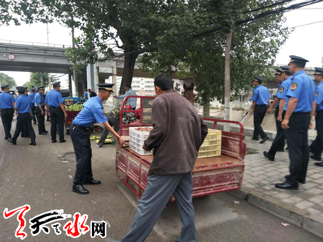 全体执法队员早上7点全部进入罗玉路,开始罗玉路的整治工作。秦州区罗玉路是水果批发市场和信合货运站的共用通道,罗玉沟内更有大量的果农,罗玉路道路两侧占用城市道路乱摆摊设点、严重堵塞道路现象,一直是附近居民反映最多的问题。