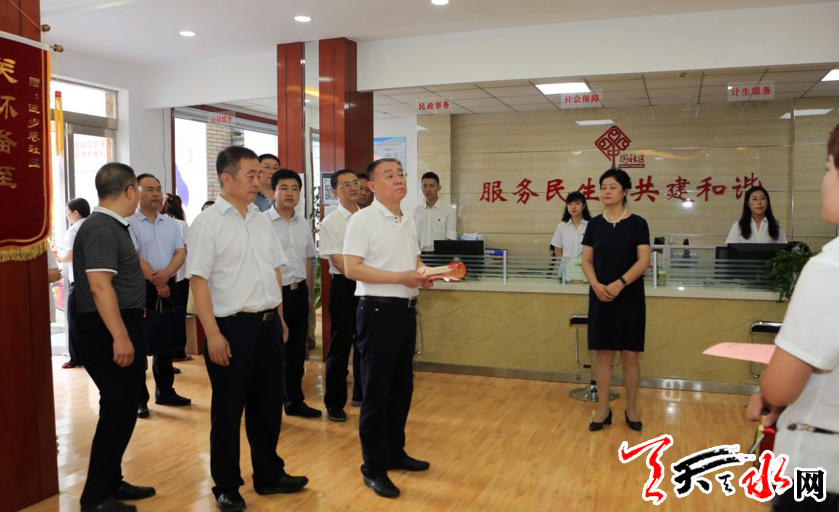 天天天水网讯【全媒体记者吴丽娜】8月1日,市委书记王锐带领市组织、民政等部门负责同志,深入党建联系点秦州区大城街道,就基层党建工作进行专题调研。他强调,要深入学习贯彻习近平新时代中国特色社会主义思想和党的十九大精神,高度自觉落实新时代党的建设总要求,立足街道、社区的实际,突出政治功能,创新工作方式,注重提高质量,推动基层党组织全面进步、全面过硬,为加强城市治理、巩固基层政权提供坚强保证。