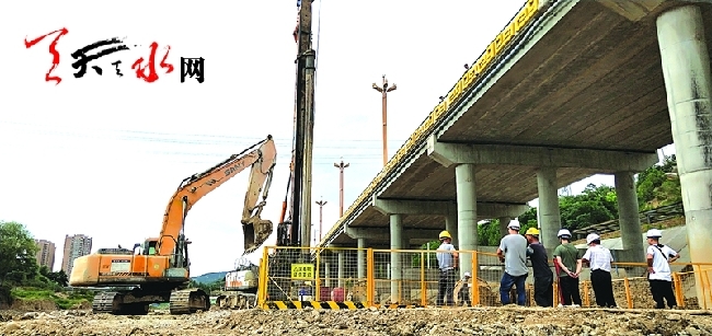 “目前挖掘机正在挖的是固裙的基墩,是有轨电车工程防止河水冲刷的附属工程,其主要起到防护作用,还有前面施工点施工的是高压旋喷桩,也是防护工程的一部分。”中铁十一局集团有限公司技术员薛栋栋在施工现场介绍说,他主要负责五里铺站点工程的技术沟通、协调配合、督导等工作,像这种防护工程沿河地段都会有,目前已经全线施工。