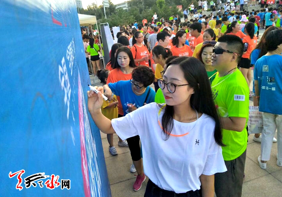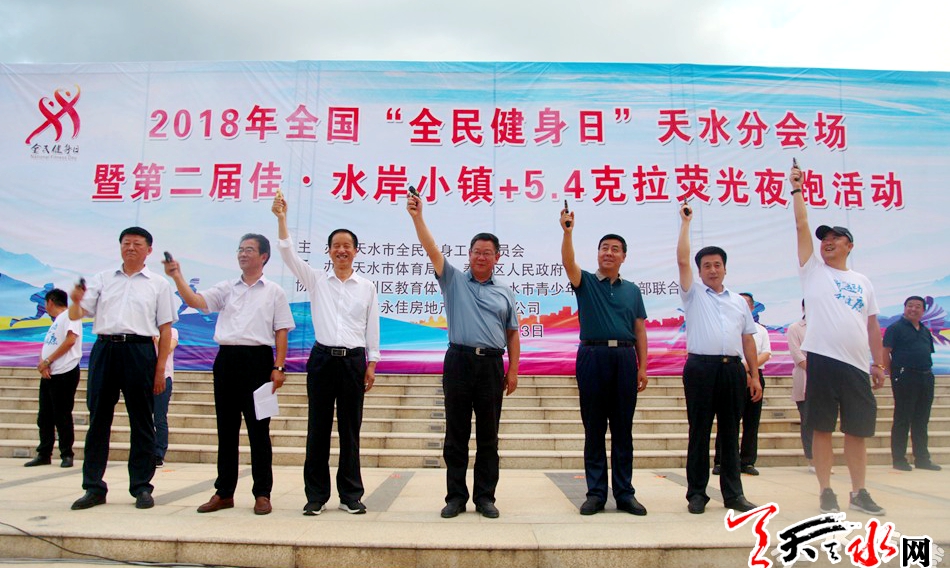 天天天水网讯【记者杨璟 实习生马红红】8月3日晚,2018年全国“全民健身日”天水分会场暨第二届荧光夜跑活动在秦州区藉河岸边举行,来自陇南、定西、平凉等市州天水市五县两区2000名跑步爱好者参与活动。