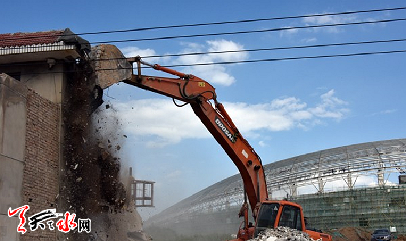 天天天水网讯【记者 张小龙】8月3日下午,麦积区组织花牛镇及相关部门单位、拆迁公司80余人,出动拆迁机械车辆,对天水市重点项目体育中心施工区域内最后一户拆迁户房屋进行拆除。