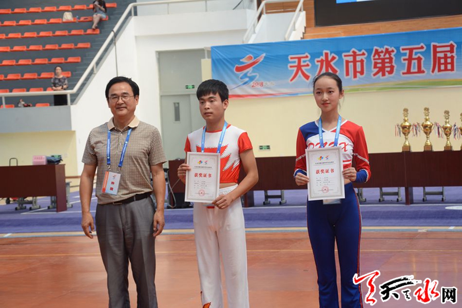 经过两天的角逐,最终决出各项目名次,其中,秦州区王文超、杨婧分别活动男子单人操、女子单人操第一名,麦积队李超超、司梦娇获得混合双人操第一名,秦安代表队、秦州代表队分别获得有氧舞蹈规定操、有氧踏板规定操第一名,天水一中代表队获得啦啦操项目第一名。秦州代表队、麦积代表队、逸夫中学代表队分别获得团体总分第一、二、三名。