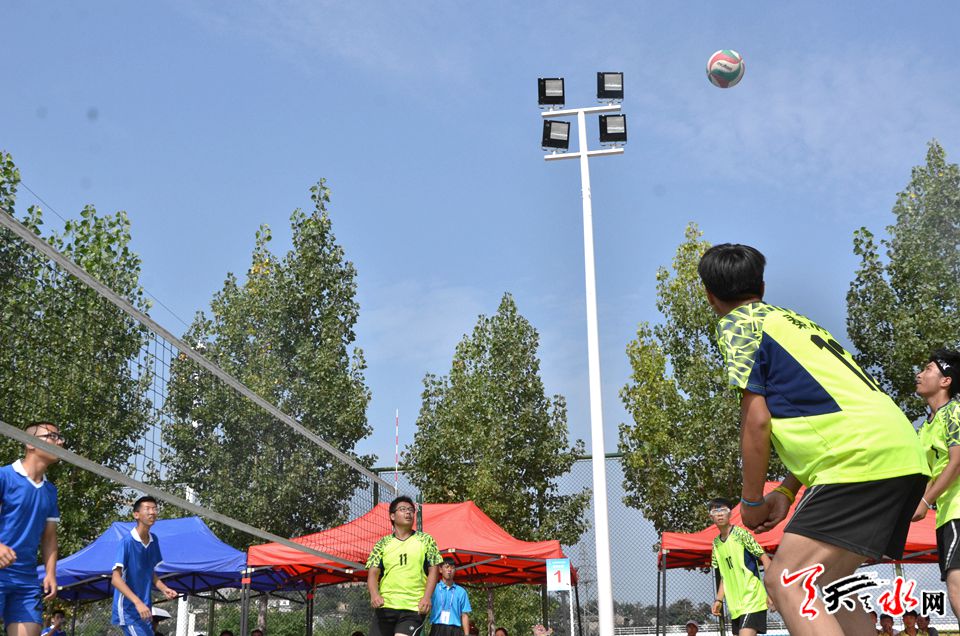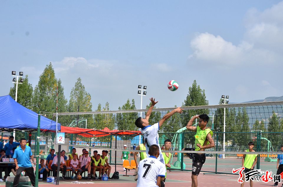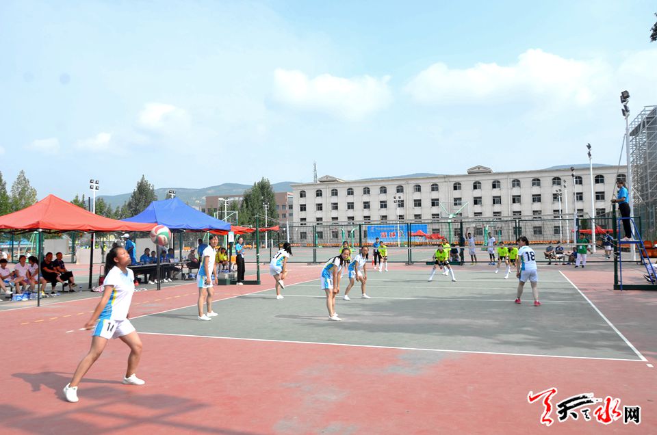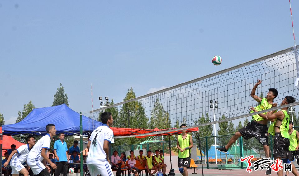 在当日进行的排球比赛中,7支代表队冒着夏日的酷暑,展开激烈比拼。在比赛中,武山队与甘谷队比赛亮点频出、精彩纷呈,两支球队你追我赶,互不相让,比分一直处于胶着状态,甘谷队以娴熟的技术以3:1的比分获胜,获胜的各代表队将进入下一轮的角逐。