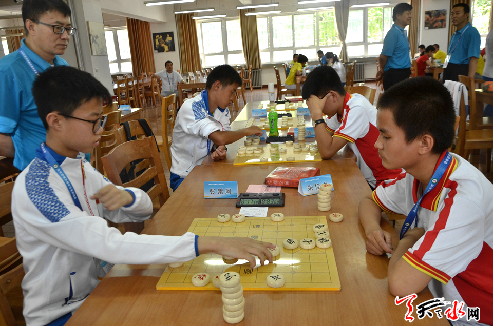 天天天水网讯【记者 张文都】8月8日下午,天水市第五届中学生运动会象棋比赛在天水市一中阅览室开赛。全市六支代表队40名选手展开激烈撕杀,为期三天的该项比赛将于10日落幕。