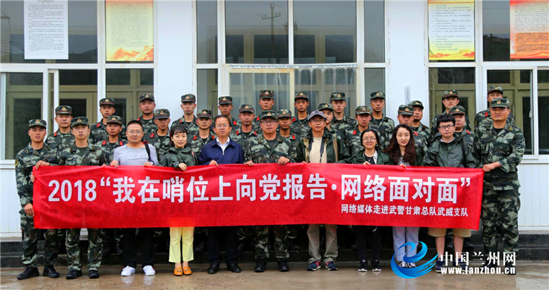 中国兰州网8月7日讯(记者 王彦达)“在巍峨的祁连山,在寂静的乌鞘岭,忠诚的卫士的身影。陪着日落,伴着日出,新时代的哨兵,展示出敢打的威猛,忠诚的赤胆,守护着千家万户,我们守护着乌鞘岭隧道,全力保障着大动脉的畅通。”伴随着嘹亮的《守护卫士之歌》,8月2日,由甘肃省委网信办组织策划的深入学习宣传贯彻党的十九大精神“七进”系列,我在哨位上向党汇报·网络面对面采访组来到了武警武威支队执勤一大队三中队。