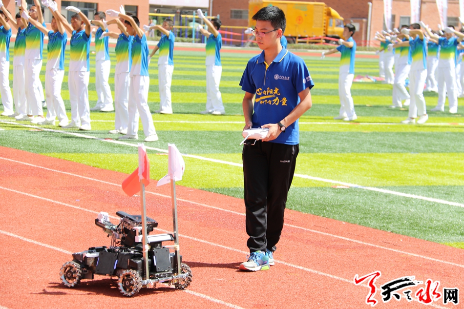 8月8日上午,天水市第五届中学生运动会在天水一中麦积分校区盛大开幕,开幕式现场一个特殊团队--机器人吉祥物方阵吸引了全场观众的眼球,为本届中运会增添了新的光彩,成为本届中运会一道亮丽的风景线。