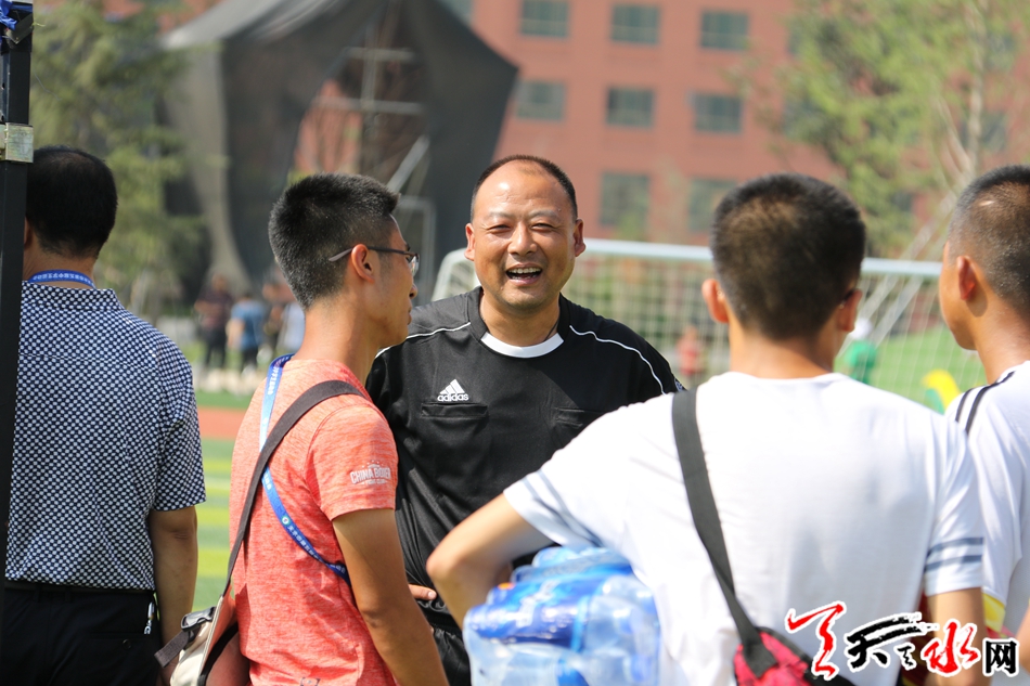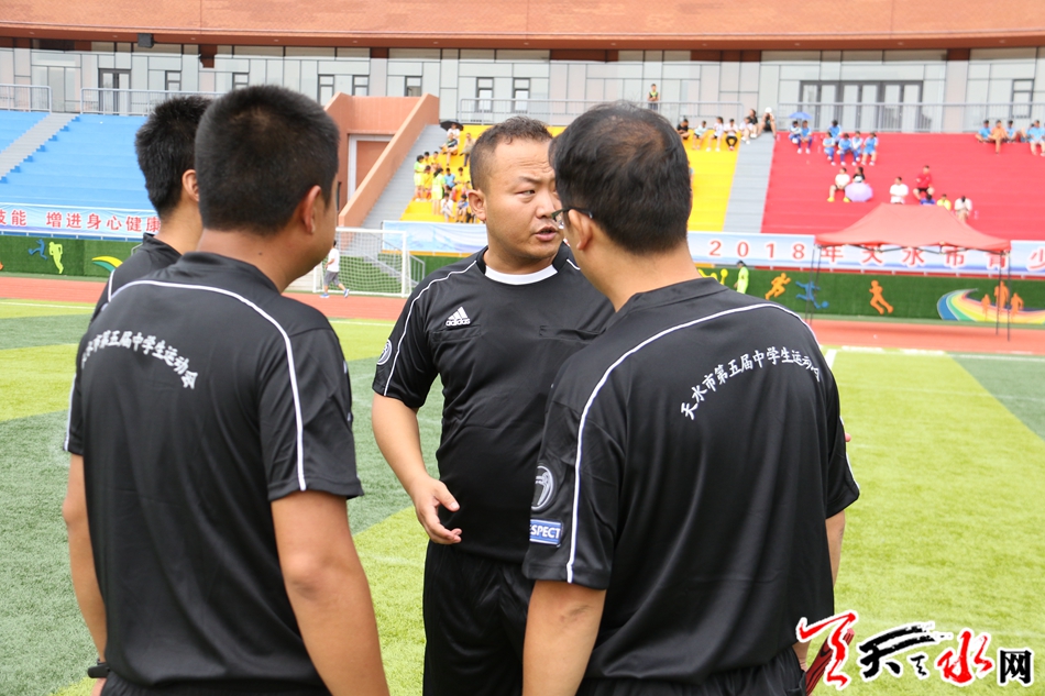 在全市第五届中学生运动会暨“市长杯”2018年青少年校园足球冠军杯赛赛程已接近尾声,足球裁判团队冒着酷暑,在炎炎烈日下每个人被晒得黝黑黝黑,真变成了“黑哨”,但他们依然奔跑在足球场上执行裁判,为这些“黑哨”们点个赞。